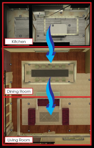 風水のよくなるインテリアデザイン インテリア風水 2022/02/252022/11/02 家の気を常に元気な「陽」の状態に保つ風水のデザイン的な工夫についてお話しします。これは、ワンルームの風水にも応用できます。 1: よい気の流れ – 空間をオープンに使う 家の設計において、小さな部屋で小分けにするよりも、オープンな大部屋にすると使い勝手がよくなると考えます。 大きなワンルームがいいと言っているのではありません。壁で仕切るのではなく、空間を目的に応じて床や天井、壁のデザインで分けることもできるということです。 この図では、キッチン、リビング、ダイニング、3つの目的の異なる空間が1つの大きな部屋の中にあります。 リビングとダイニングは壁で仕切られているのではなく、家具の配置、壁の色、家具のデザインの違いで分かれています。 ポイントは壁紙です。壁紙はコストをそれほどかけることなく使え、たった1日の工事で家の気を新鮮に生まれ変わらせます。 壁紙は色々なデザインを選ぶことができ、貼りかえるたびに家のエネルギーが生まれ変わります。 この図ではリビングにソファがあります。ソファからキッチンが見えますが、キッチンはリビングと反対側にあります。 リビングとキッチンの間はダイニングが隔てています。このような間取りは、来客が多い家に適しています。 客がリビングでくつろいでいる間、キッチンから料理の良い香りが漂い、料理ができたら自然とダイニングに流れます。 このようなデザインなら、1つの大きな部屋の中でも、用途にあった機能を活用できます。風水的には、気の流れが滞ることがなく、幸運を受けることが容易になります。 2: 素材で遊ぶ – 生地、家具、壁紙 大きな部屋をいくつかの異なる用途に使うのなら、それぞれの空間を視覚的に分けることが重要です。床、壁紙、天井の3つのデザインを工夫し、視覚的に境い目をつくればいいのです。 センスと遊び心を発揮し、住人が幸せに感じるようデザインしましょう。 この例では、床に「大理石」と「木」という2つの異なる素材を使っています。メインの床は大理石、壁ぎわに木材のフローリングという組み合わせです。同様に、カーペット、タイル、石材など自由に組み合わせたデザインが可能です。 天井には装飾的なパネルを用いて、適度な凹凸でアクセントをつけて楽しんでいます。 リビングには高さのある天井を、食卓の上は親近感を深めるための低い天井を使うといった工夫を施しました。 このように天井を工夫すると、同じ部屋の中で2つの異なる目的の空間をうまく分けることができます。 壁のデザインは単調になりがちですが、壁紙のデザインで遊び心を加え、良い雰囲気の部屋をつくる工夫ができます。 良い空間づくりのために、異なるデザインの壁紙を使うことを検討するのは良いアイディアです。壁をカラフルに塗ったり、幸せを感じるようなデザインの壁紙を使いましょう。 風水を取り入れ、方位にふさわしい色や素材を選びましょう。インテリアデザイナーになったつもりで、創造力を発揮し、大胆に。ためらうことはありません。 このように目的の異なる区分を1つ1つデザインすることで、大きな1つの部屋がいくつかの小さな部屋になります。 デザインのヒント 1 単調なデザインではなく、見て心がときめくものを選ぶ。 3: 色で遊ぶ – 風水を取り入れる 色と材質は家に「陽の気」をもたらすものを選びましょう。 色を決める時は、風水も気にしてください。下の表は八卦という風水の基本的な考えに基づいています。この表に従うなら、北東のリビングは濃い茶色や黄色といった「土」の色、赤など「火」の色をあわせる、というかたちです。 八卦・八方位と色 方角 五行 調和する色 高める色 北 水 青、黒 白、グレー、金、銀 北東 / 南西 土 こげ茶、黄 赤、紫、ピンク 東 / 南東 木 緑 青、黒 西 / 北西 金 白、グレー、金、銀 こげ茶、黄 南 火 赤、紫、ピンク 緑 これと同様、毎年のフライングスターチャートを参考に、色を選ぶこともできます。良い星の場所にエネルギーを高める色、悪い星の場所にエネルギーを抑える色を選ぶという考え方です。 年のフライングスターと色 方角 フライングスター 色 / 柄 北 1 青、黒、白、金、銀、波柄 北東 8 ベージュ、サンド、黄、赤、四角柄 東 3 赤、金、三角柄 南東 4 青、黒、緑、花柄 南 9 赤、ピンク、三角柄 南西 2 白、金、銀、丸柄 西 7 青、黒、波柄 北西 6 白、金、銀、丸柄 *表は2022年のもの このように壁紙で年の不運のフライングスターからの影響を抑える利点は、広い範囲に対して効果を発揮できることと、壁紙を毎年必ず変えることになるので、それによって家のエネルギーが毎年高まることです。 デザインのヒント 2 毎年のフライングスターチャートにあわせて壁紙を選ぶ デザインのヒント 3 風水で忘れてはいけない3つのこと: 気の流れのよい家具の配置 元気になる素材 遊び心のある色と壁紙 関連する